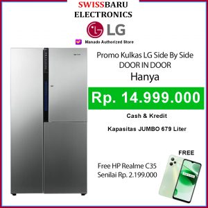 Promo Kulkas LG Side By Side di Toko Swiss Baru – Hallo Sobat Swissbaru saat ini torang hadir dengan berbagai promo menarik bersama LG yaitu beli kulkas LG Side By Side dapat hadiah menarik yakni Free Handphone Realme C35, ngoni cuma bisa dapatkan hanya di toko swiss baru manado.