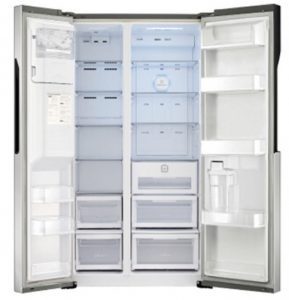 Teknologi freezer yang terbaru dengan freezer yang ada di sebelah kiri, pendingin yang ada di sebelah kanan, kulkas SBS LG menghadirkan inovasi dan gaya di dapur kalian dan akan memperindah ngoni pe dapur di dalam rumah. Rak, laci serta keranjang di pintu kulkas ini gampang diatur sehingga memudahkan kalian untuk menempatkan dan mencari bahan makanan atau minuman yang disimpan.
