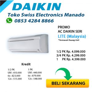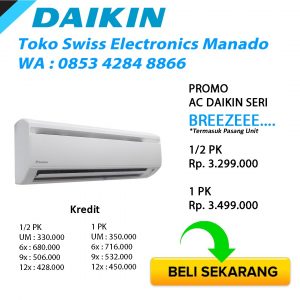 Daikin telah menjual produknya lebih dari 140 negara, untuk kualitasnya tentu tidak perlu di ragukan lagi. AC Daikin dapat kalian miliki sekitaran harga 3 Jutaan di Toko Swiss Baru semakin lengkap fitur yang diberikan semakin tinggi juga harganya.